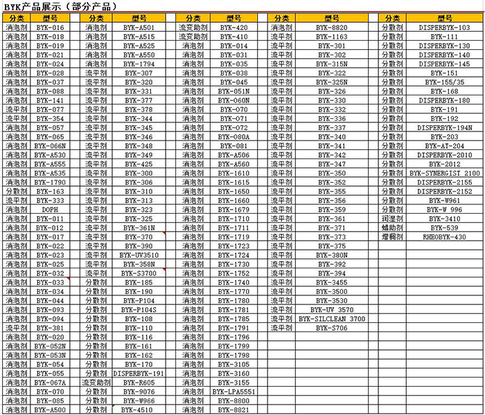 毕克化学的客户包括涂料和印刷油墨,塑料,胶粘剂和密封胶以及清洁剂,地坪涂料和润滑剂的制造商。毕克助剂还成功用于建材化学品,石油和天然气以及铸造行业。
